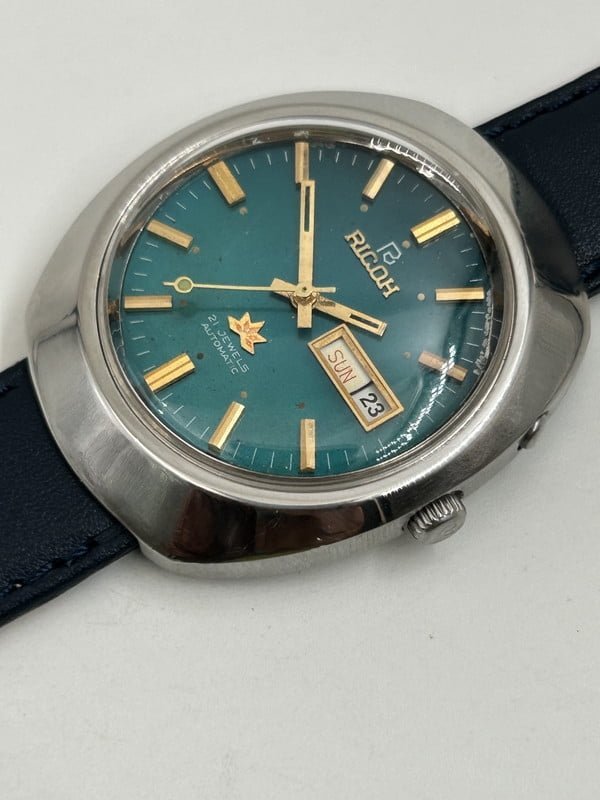 Ricoh 21 Jewels Automatic Watch ? Teal Dial with Day-Date Display for Men