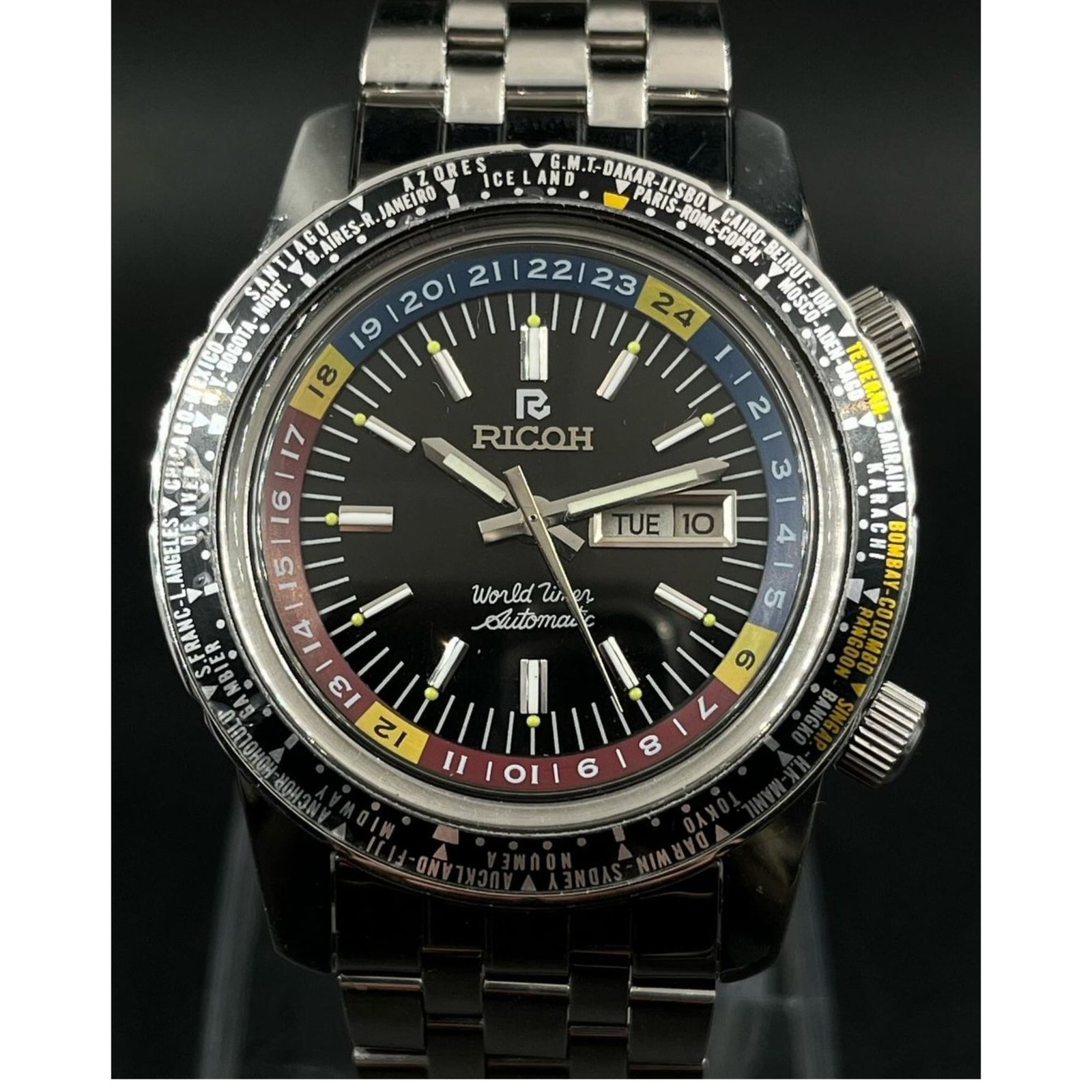 Ricoh World Timer Automatic Mens Watch ? Stainless Steel, Multi-Time Zone, Day-Date Display